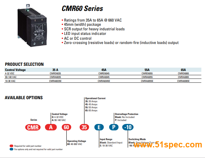 | CMRA6045E | 18-36 VAC | 45 A | 48-660 VAC | DIN Rail |