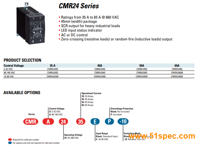 | CMRA6045E-10 | 18-36 VAC | 45 A | 48-660 VAC | DIN Rail |