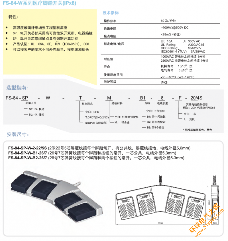 FS-84-W 醫(yī)療腳踏開關(guān)(IPx8)